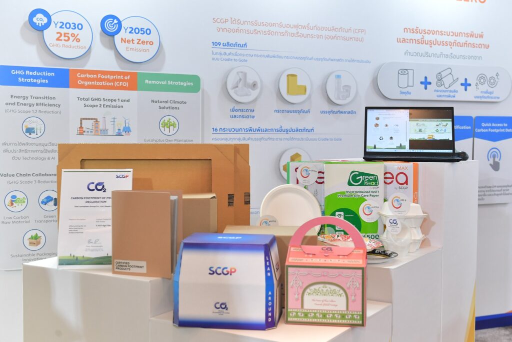 SCGP เสริมธุรกิจด้วยกลยุทธ์ ESG เพื่อขับเคลื่อนองค์กรเติบโตอย่างยั่งยืนให้พร้อมรับการเปลี่ยนแปลงที่สำคัญของโลก (Megatrends) ชูการรับรองคาร์บอนฟุตพรินท์ของผลิตภัณฑ์ (CFP) การพัฒนา Private declaration Label เพื่อระบุปริมาณ CFP บนผลิตภัณฑ์ พร้อม “ซอฟต์แวร์คาร์บอนฟุตพริ้นท์” ช่วยคำนวณปริมาณปล่อยคาร์บอนไดออกไซด์ได้อย่างรวดเร็ว เสริมศักยภาพการดำเนินธุรกิจ ช่วยจัดการปล่อยก๊าซเรือนกระจกใน Scope 3 ของลูกค้า เพิ่มโอกาสธุรกิจและเสริมศักยภาพอุตสาหกรรมบรรจุภัณฑ์ไทย ตั้งเป้าขอการรับรอง CFP ในกลุ่มสินค้าที่ผลิตในประเทศไทย 100% ภายในปี 2027