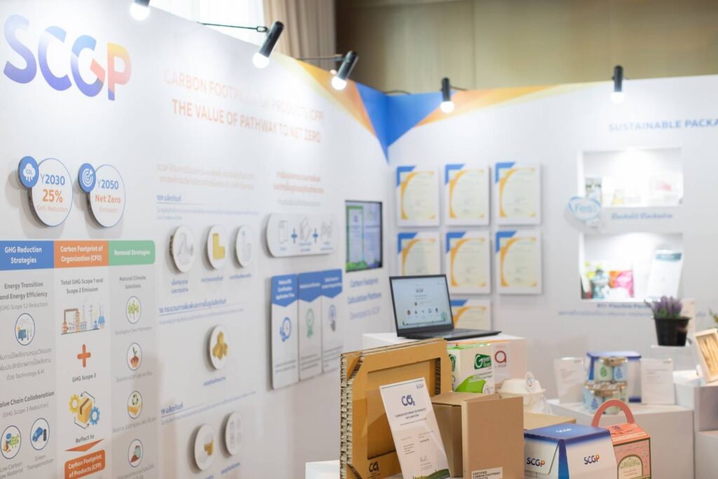 อีกด้านคือ การได้รับการรับรอง Carbon Footprint of Product (CFP) 128 ผลิตภัณฑ์ จากองค์การบริหารจัดการก๊าซเรือนกระจก (อบก.) ที่สามารถระบุจำนวนปริมาณการปล่อยก๊าซเรือนกระจกในบรรจุภัณฑ์และผลิตภัณฑ์แต่ละชิ้นได้ และได้รับการรับรอง Carbon Footprint จากกระบวนการพิมพ์และขึ้นรูปบรรจุภัณฑ์กระดาษรวม 16 กระบวนการ ครอบคลุมทุกกลุ่มสินค้ากระดาษบรรจุภัณฑ์ โดยลูกค้าสามารถนำ CFP ไปใช้ต่อยอดคำนวณปริมาณการปล่อยก๊าซเรือนกระจกทั้งหมดได้ นอกจากนี้ ยังได้พัฒนา “ฉลากคาร์บอนฟุตพริ้นท์ของผลิตภัณฑ์ที่ออกโดย SCGP (Private Declaration Label)” เพื่อแสดงปริมาณการปล่อยก๊าซเรือนกระจกของบรรจุภัณฑ์ และได้พัฒนา “ซอฟต์แวร์คาร์บอนฟุตพริ้นท์” ของผลิตภัณฑ์ พร้อมเอกสารรับรองการปล่อยก๊าซเรือนกระจกของผลิตภัณฑ์แก่ลูกค้า ทั้งนี้ได้ตั้งเป้าขอการรับรอง CFP ในกลุ่มสินค้าที่ผลิตในประเทศไทย 100% ภายในปี 2027 ด้วย