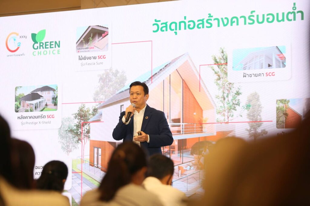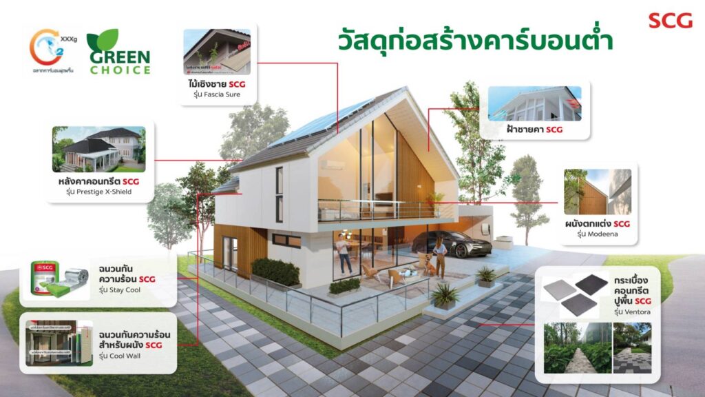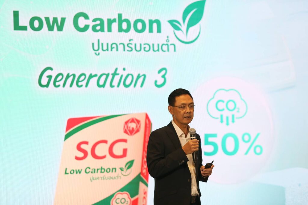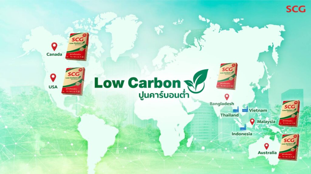 ด้านธุรกิจที่เกี่ยวข้องกับการก่อสร้างและที่อยู่อาศัย เอสซีจี ซีเมนต์แอนด์กรีนโซลูชัน มุ่งเพิ่มศักยภาพการแข่งขันเพื่อเตรียมความพร้อมในการใช้มาตรการภาษีคาร์บอนที่เริ่มบังคับใช้ในหลายประเทศ โดยธุรกิจได้ดำเนินการลดคาร์บอนไดออกไซด์ตลอดกระบวนการของธุรกิจล่วงหน้ามาอย่างต่อเนื่อง ตอบสนองกับทิศทางธุรกิจ และยังเป็นโอกาสสร้างการเติบโตจากนโยบายสนับสนุนการใช้ปูนคาร์บอนต่ำเป็นหลักในหลายโครงการทั้งของภาครัฐและเอกชน ที่ผ่านมา เอสซีจีสามารถส่งออกปูนคาร์บอนต่ำไปสหรัฐอเมริกาได้แล้วมากกว่า 1 ล้านตัน รวมทั้งยังสามารถขยายการส่งออกไปยังตลาดใหม่ ๆ ทั้งในอาเซียน ออสเตรเลีย และแคนาดา จึงเร่งผลักดันด้านการวิจัยและพัฒนา (R&D) ต่อเนื่อง ปัจจุบันกำลังพัฒนาปูนคาร์บอนต่ำ เจเนอเรชัน 3 ด้วยเทคโนโลยีที่สามารถเพิ่มสัดส่วนการทดแทนปูนเม็ดในการผลิต ช่วยลดคาร์บอนไดออกไซด์ได้ร้อยละ 40-50 เมื่อเทียบกับปูนซีเมนต์ประเภทเดิม เพื่อตอบสนองความต้องการปูนคาร์บอนต่ำที่เพิ่มขึ้น รวมทั้งเร่งขยายกำลังการผลิตปูนคาร์บอนต่ำในเวียดนามใต้ ซึ่งเป็นตลาดที่มีศักยภาพและสามารถเป็นฐานการส่งออกในอนาคต