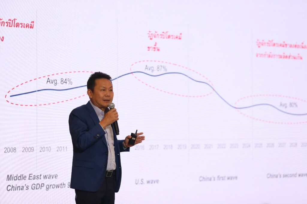 “เอสซีจี ติดตามสถานการณ์ไทยและโลกทุกด้าน ทั้งเศรษฐกิจ ภูมิศาสตร์ สังคม สิ่งแวดล้อม เพราะต่างส่งผลกระทบซึ่งกันและกัน ขณะเดียวกันยังนำมาวิเคราะห์ล่วงหน้า จัดทำแผนที่เหมาะสมกับแต่ละจังหวะ และนำมาใช้ปรับตัวอย่างทันท่วงทีให้ธุรกิจดำเนินต่อเนื่องและมั่นคง นอกจากจะสร้างความสามารถทางการแข่งขันที่เข้มแข็งทั้งในระยะสั้น-กลาง-ยาว ยังรักษาเสถียรภาพทางการเงิน พร้อมขยายไปสู่ธุรกิจใหม่ ๆ ที่มีศักยภาพสูง ตอบทุกโอกาสและความท้าทายที่เปลี่ยนไปอย่างต่อเนื่อง” กรรมการผู้จัดการใหญ่ สรุปปิดท้าย
