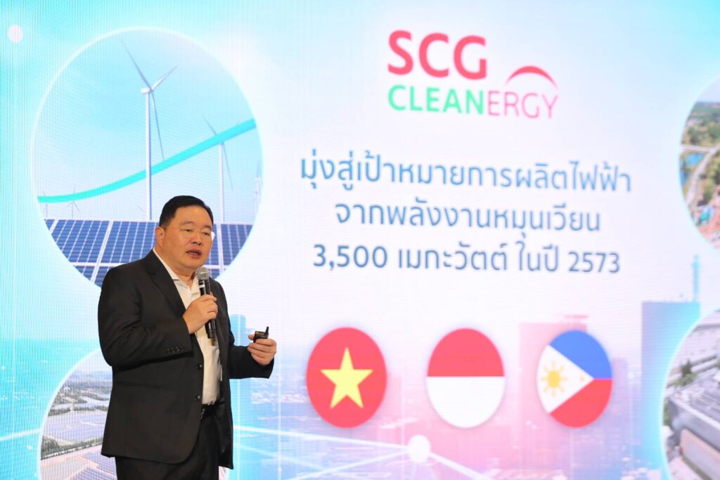 ธุรกิจ New S-Curve เอสซีจี คลีนเนอร์ยี่ เดินหน้าขยายสู่อาเซียน ทั้งเวียดนาม อินโดนีเซีย ฟิลิปปินส์ มุ่งสู่เป้าหมายการผลิตไฟฟ้าจากพลังงานหมุนเวียน 3,500 เมกะวัตต์ในปี 2573 ด้วยจุดแข็งด้านนวัตกรรมและโซลูชันพลังงานสะอาดครบวงจรระดับโลก ทั้งระบบบริหารจัดการ การผลิต การจัดเก็บ (Energy Storage System) และจำหน่ายไฟฟ้าจากแพลตฟอร์มพลังงานสะอาด ‘Smart Micro Grid’ ตลอดจน ‘แบตเตอรี่กักเก็บพลังงานความร้อนจากพลังงานสะอาด (Heat Battery)’ ซึ่งอยู่ระหว่างการก่อสร้างยูนิตแรกของโลกสำหรับอุตสาหกรรมปูนซีเมนต์ ที่โรงงานปูนซีเมนต์ เอสซีจี จ.สระบุรี นอกจากนี้ พร้อมเสริมความแข็งแกร่งยิ่งขึ้น ด้วยการลงทุนในบริษัทพัฒนาเทคโนโลยีขั้นสูง ‘นวัตกรรมการผลิตเซลล์แสงอาทิตย์แบบ Tandem Perovskite’ โดยบริษัทนี้มีจำนวนสิทธิบัตรอันดับต้น ๆ ของโลก เพื่อช่วยผลิตเซลล์พลังงานแสงอาทิตย์ที่มีประสิทธิภาพสูงถึงร้อยละ 30 ทำให้ภาคอุตสาหกรรมเข้าถึงพลังงานสะอาดได้สะดวกยิ่งขึ้น