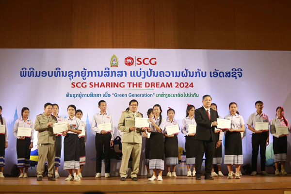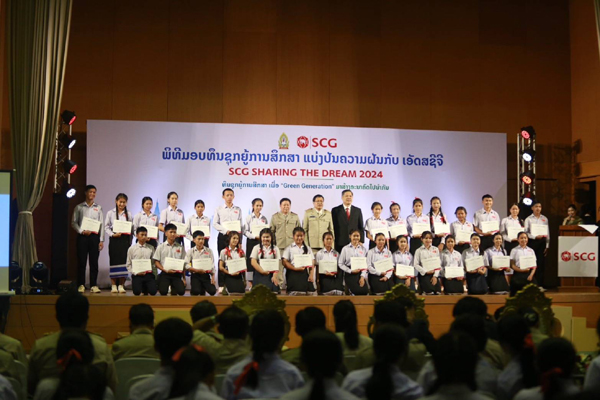 มอบทุนการศึกษา 200 ทุน ทั้งระดับมัธยมและมหาวิทยาลัยที่ประเทศ สปป.ลาว โดยมี ดร.สำลาน พันถะวง รองรัฐมนตรีกระทรวงศึกษาธิการและกีฬา สปป.ลาว และคุณมรกต ศรีสวัสดิ์ เอกอัครราชทูตไทย ประจำ สปป. ลาว และ นายปรเมศวร์ นิสากรเสน ผู้ช่วยผู้จัดการใหญ่-การบริหารกลาง เอสซีจี ร่วมแสดงความยินดีและให้โอวาทแก่น้อง ๆ