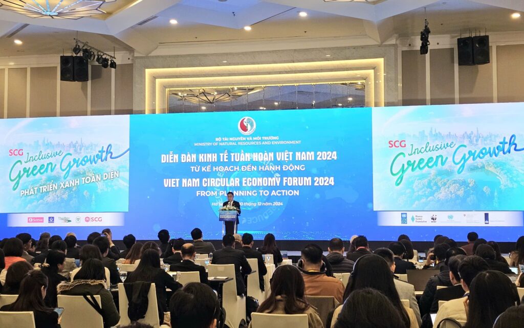 เอสซีจี ร่วมแบ่งปันหลักเศรษฐกิจหมุนเวียน (Circular Economy) ในงาน “Vietnam Circular Economy Forum 2024” จัดโดยกระทรวงทรัพยากรธรรมชาติและสิ่งแวดล้อมของเวียดนาม และพันธมิตรองค์กรชั้นนำทั้งเวียดนามและไทย เพื่อนำแผนยุทธศาสตร์ขับเคลื่อนหลักเศรษฐกิจหมุนเวียนแห่งชาติเวียดนาม ซึ่งกำลังจะได้รับการอนุมัติจากนายกรัฐมนตรีของเวียดนามไปปฏิบัติจริง หลังภาครัฐ เอกชน องค์กรไม่แสวงผลกำไร สถาบันการศึกษา สถาบันวิจัย ตลอดจนผู้เชี่ยวชาญด้านเศรษฐกิจหมุนเวียน รวมทั้งเอสซีจี ร่วมผลักดันแผนดังกล่าวมากว่า 3 ปี