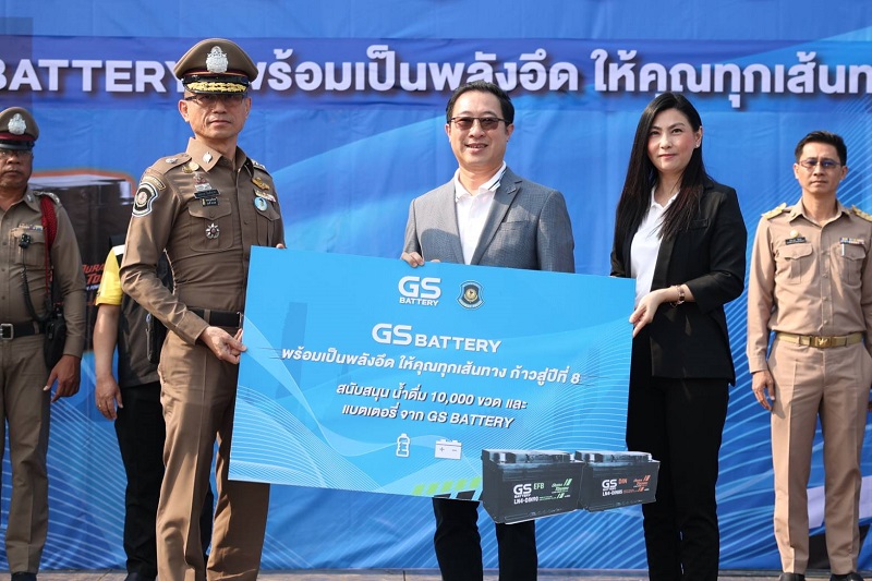 “GS BATTERY มีความยินดีอย่างยิ่งที่ในปีนี้เรายังคงไดัรับการตอบรับที่ดีจากผู้ใช้รถ และการสนับสนุนอย่างเต็มที่จาก ‘กองบังคับการตำรวจทางหลวง’ ที่เห็นถึงความมุ่งมั่นของโครงการ ‘GS BATTERY พร้อมเป็น พลังอึด ให้คุณทุกเส้นทาง’ ด้วยวัตถุประสงค์ในการกระตุ้นให้ผู้ใช้รถตระหนักถึงความสำคัญของการมีส่วนร่วม ลดความเสี่ยงการเกิดอุบัติเหตุบนท้องถนน โดยส่งมอบ น้ำดื่ม ตามจุดสำคัญต่างๆ ทั่วประเทศกว่า 200 จุด ตลอดช่วงเทศกาลสงกรานต์ และบริการตรวจแบตเตอรี่ให้พร้อมใช้ ที่หน่วยบริการทางหลวง ใน 2 จุดใหญ่ และถ้าหากผู้ใช้รถประสบปัญหาแบตเตอรี่หากพบปัญหาแบตเตอรี่รถหมด โทรหา GS พร้อม กด 1380 ทั่วประเทศ บริการแบตเตอรี่เดลิเวอรี่ ถึงที่หมายภายใน 30 นาที ทุกพื้นที่ที่ให้บริการ เปิดบริการทุกวัน เวลา 8.00 – 19.00 น. สุดท้ายนี้การได้รับความร่วมมือและสนับสนุนจากพันธมิตรทุกภาคส่วน เป็นแรงขับเคลื่อนที่ส่งให้โครงการ ต่อเนื่องจนก้าวสู่ปีที่ 8” คุณสมพร จันกรีนภาวงศ์ กล่าวปิดท้าย