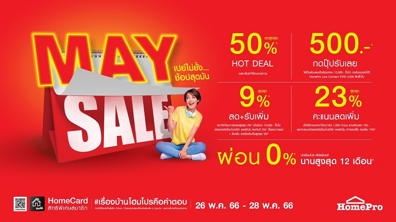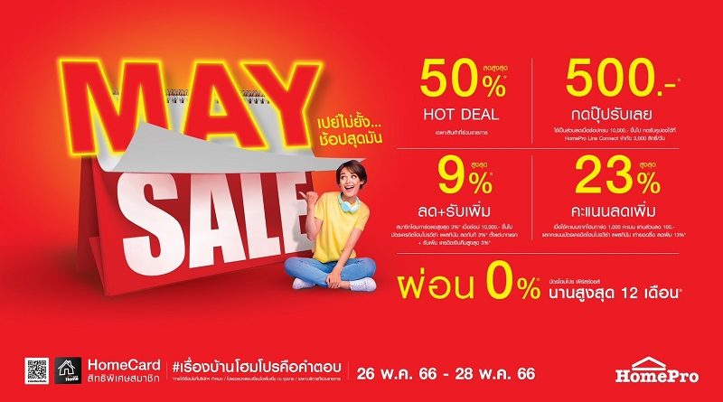 ช้อปสุดคุ้ม ตลอดปลายเดือนนี้ที่โฮมโปรกับ “ MAY SALE” ลดกระหน่ำสูงสุด 50% ตั้งแต่วันนี้ – 28 พ.ค. 66 นี้ 3 วันเท่านั้น! ที่โฮมโปรทั่วไทย และช้อปออนไลน์