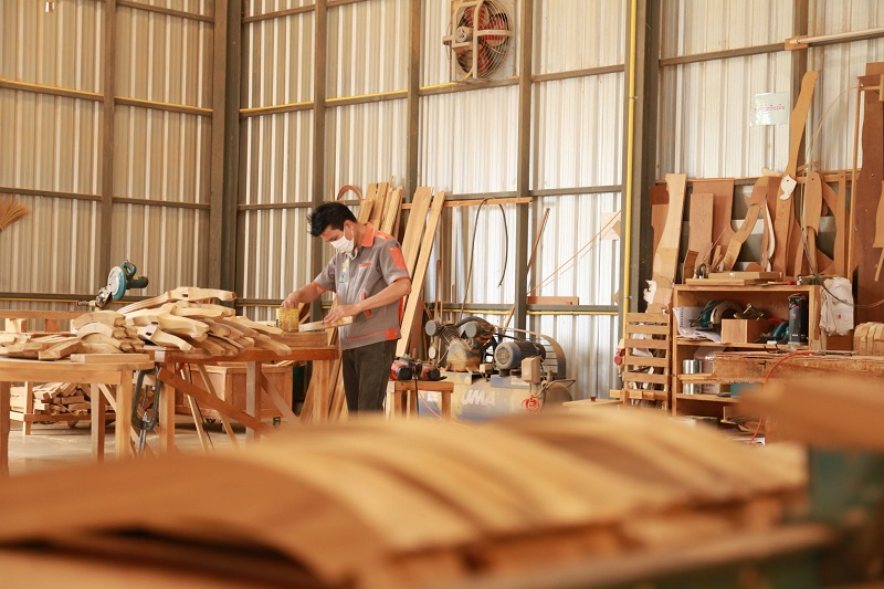 1. ปัญหาการใช้วิธีผลิตแบบ Single Station คือ ช่าง 1 คนต่อ 1 โมเดล โดยลงมือทำเองทุกขั้นตอน ตั้งแต่แบกไม้ ตัดไม้ เลื่อยไม้ ไสไม้ ไม่มีการแบ่งหน้าที่ชัดเจนให้กับผู้ช่วย ทำให้ต้องใช้เวลาในการผลิตจากการเตรียมวัสดุและขึ้นโครงนานเฉลี่ยมากกว่า 50 ชั่วโมง/เฟอร์นิเจอร์ 1 ตัว ต้นทุนการผลิตจึงสูงขึ้น จึงได้ใช้ระบบ Share Workload ปรับการทำงานระหว่างผู้ช่วยช่างกับช่าง โดยให้ช่างเป็นผู้ประกอบอย่างเดียวประจำโต๊ะ และให้ผู้ช่วยเป็นคนเดินงาน เพื่อเตรียมขึ้นรูปชิ้นส่วนต่าง ๆ ให้เบื้องต้น ทำให้ลดขั้นตอนการทำงานลง สามารถส่งมอบงานได้เร็วขึ้น เช่น จากการผลิตโครงไม้สามารถลดลงจาก 50 ชั่วโมง เหลือเพียง 43 ชั่วโมง