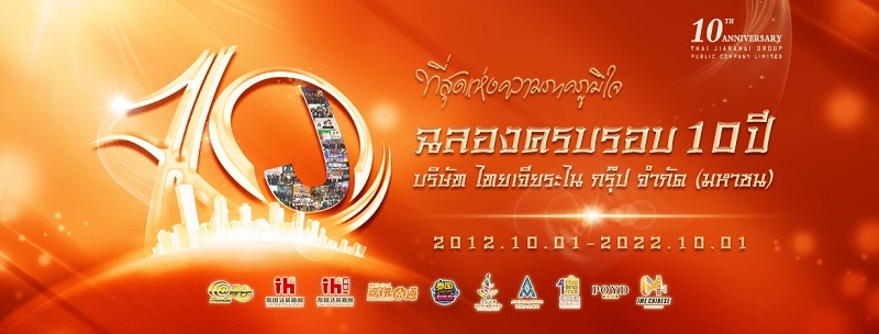 ในปีพ.ศ. 2565 นี้เป็นวันครบรอบ 47 ปีของการสถาปนาความสัมพันธ์ทางการทูตระหว่างประเทศจีนและประเทศไทยและการครบรอบ 100 ปีการก่อตั้งพรรคคอมมิวนิสต์จีน และวันที่ 1 ตุลาคม 2565 เป็นวันครบรอบ 73 ปีของการก่อตั้งสาธารณรัฐประชาชนจีน ด้วยการสนับสนุนทุกภาคฝ่ายของหน่วยงานรัฐบาลจีนและหน่วยงานรัฐบาลไทย สถาบันวัฒนธรรม พันธมิตรสื่อ รัฐวิสาหกิจจีน สมาคมจีนในไทย และอีกหลายภาคส่วน เป็นแรงขับเคลื่อนให้บริษัท ไทยเจียระไน กรุ๊ป จำกัด (มหาชน) ได้เดินหน้าก้าวเข้าสู่ปีที่ 10 อย่างสวยงาม