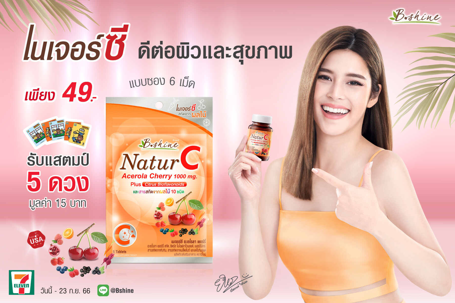 “บีไชน์ เนเจอร์ซี” ร่วมแคมเปญ “แสตมป์เซเว่น อีเลฟเว่น” จัดโปรพิเศษ ราคาคุ้ม1 ซอง 49 บาท รับแสตมป์ 3 บาท 5 ดวง มูลค่า 15 บาท ที่เซเว่น อีเลฟเว่น ทุกสาขา