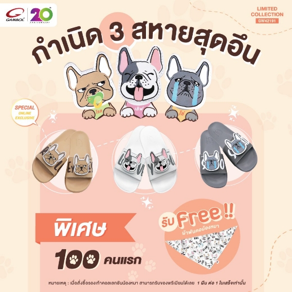 “แกมโบล” เปิดตัวคอลเลคชันใหม่รองเท้าแตะเอาใจคนรักสุนัขกับ GAMBOL สามสหายสุดอึน 3 แบบ 3 สไตล์