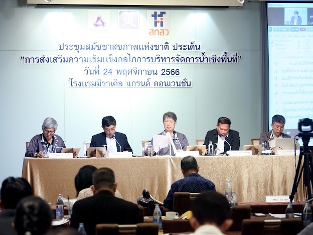รศ.ดร.บัญชา ขวัญยืน ประธานคณะทำงานพัฒนาประเด็นการส่งเสริมความเข้มแข็งกลไกการบริหารจัดการน้ำเชิงพื้นที่ เปิดเผยว่า ทางคณะทำงานได้ร่วมกันพัฒนาประเด็นนี้ในช่วงตลอดกว่า 4 เดือนที่ผ่านมา ผ่านการจัดเวทีประชุม หารือกลุ่มย่อย มีกระบวนการถกแถลงร่วมกับหน่วยงานเครือข่ายที่เกี่ยวข้องมากมาย รวมทั้งการจัดเวทีรับฟังความคิดเห็นทั้งในส่วนกลางและระดับพื้นที่ ซึ่งมีการหารือประเด็นนี้ในเวทีสมัชชาสุขภาพจังหวัด ที่จัดขึ้นใน 5 จังหวัด ได้แก่ สมุทรสงคราม น่าน อุบลราชธานี เชียงใหม่ และสตูล เมื่อวันที่ 17 ต.ค.,1 พ.ย., 6 พ.ย., 8 พ.ย. และ 9 พ.ย. 2566 ตามลำดับ