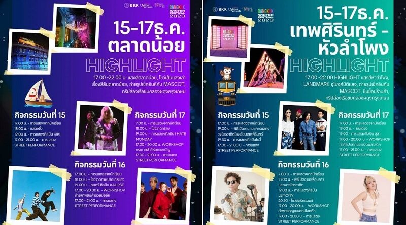 กรุงเทพมหานคร ขอเชิญเที่ยวงาน Bangkok Winter Festival งานฤดูหนาวส่งท้ายปี 2023 ณ แนวคลองผดุงกรุงเกษม