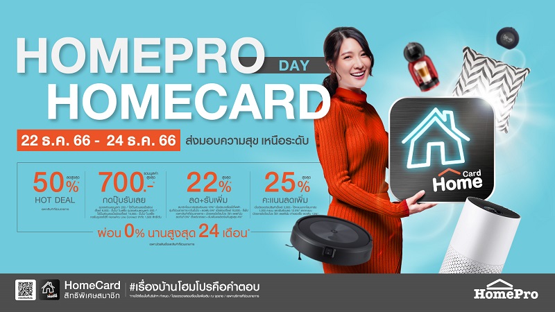 “HOMEPRO HOMECARD DAY” ส่งมอบความสุข…เหนือระดับ ดีลแรง! ส่งท้ายปี ลดสูงสุด 50% วันที่ 22-24 ธ.ค.66 (3 วันเท่านั้น!)