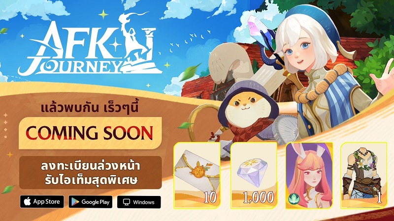 ดังนั้นถ้าไม่อยากพลาดโบนัสพิเศษเหล่านี้ รีบลงทะเบียนล่วงหน้ากันได้เลย โดยดาวน์โหลดแอปได้ที่ App Store หรือ Play Store พิมพ์คำว่า AFK Journey ที่ช่องค้นหา จากนั้นให้กดรับหรือสั่งซื้อล่วงหน้าเพื่อลงทะเบียน และ Official Website หรือสำหรับผู้ที่ใช้เครื่อง PC สามารถลงทะเบียนได้ที่ https://afkjourney-th.farlightgames.com/