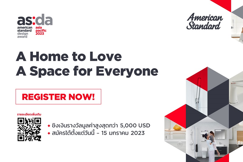 เวทีประชันความคิดสร้างสรรค์ด้านการออกแบบ American Standard Design Award 2023 (ASDA) เชิญชวนนักศึกษาระดับอุดมศึกษาสาขาการออกแบบส่งผลงานเข้าประกวด ภายใต้แนวคิด ‘A Home to Love, A Space for Everyone’ เปิดโลกแห่งจินตนาการใหม่ในการสร้างสรรค์พื้นที่อยู่อาศัยสำหรับการอยู่ร่วมกันของคนในหลายช่วงวัย