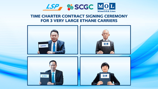 นายศักดิ์ชัย ปฏิภาณปรีชาวุฒิ ประธานเจ้าหน้าที่บริหารและกรรมการผู้จัดการใหญ่ SCGC เผยว่า “SCGC ขับเคลื่อนโครงการเพิ่มวัตถุดิบก๊าซอีเทนที่โรงงาน LSP ประเทศเวียดนาม (โครงการ LSPE) อย่างเร่งด่วนตามแผนเชิงรุกเพื่อเพิ่มขีดความสามารถในการแข่งขัน และลดต้นทุนอย่างมีนัยสำคัญ มั่นใจ พร้อมเดินหน้ารับตลาดปิโตรเคมีช่วงฟื้นตัวในอนาคต โดยความคืบหน้าล่าสุด ได้จัดหาและล็อกวัตถุดิบก๊าซอีเทน จากสหรัฐอเมริกาเป็นผลสำเร็จ พร้อมลงนามในสัญญาระยะยาวเพื่อจัดหาวัตถุดิบก๊าซอีเทน ประมาณ 1 ล้านตันต่อปี เป็นระยะเวลา 15 ปี กับ Enterprise Products Partners ผู้จัดหาก๊าซอีเทนชั้นนำจากสหรัฐอเมริกา และลงนามในสัญญาระยะยาวสำหรับเช่าเหมาเรือขนส่งก๊าซอีเทน (Very Large Ethane Carriers: VLECs) กับบริษัท Mitsui O.S.K. Lines (MOL) ผู้ให้บริการเรือขนส่งวัตถุดิบชั้นนำของโลก รอบแรกจำนวน 3 ลำ ซึ่ง MOL จะให้บริการขนส่งก๊าซอีเทนจากสหรัฐอเมริกาไปยังประเทศเวียดนามเป็นเวลา 15 ปี ทั้งนี้สัญญาเช่าเหมาเรืออีก 2 ลำที่เหลืออยู่ระหว่างดำเนินการ จึงมั่นใจได้ว่าโรงงาน LSP จะสามารถแข่งขันได้ในระยะยาวด้วยต้นทุนที่ต่ำลงอย่างมีนัยสำคัญ ทั้งนี้ โรงงาน LSP ถูกออกแบบมาให้มีความยืดหยุ่นในการรับวัตถุดิบก๊าซอยู่แล้ว จึงสามารถปรับปรุงโรงงานให้ใช้วัตถุดิบที่เป็นก๊าซอีเทนได้มากถึงสองในสามของปริมาณวัตถุดิบทั้งหมด ซึ่งส่วนที่เหลือจะเป็นก๊าซโพรเพนและแนฟทา”