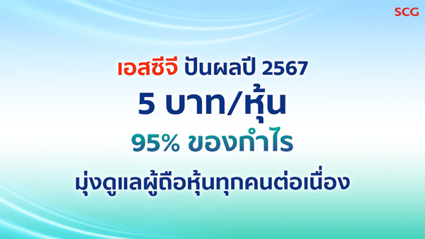 นายธรรมศักดิ์ เศรษฐอุดม กรรมการผู้จัดการใหญ่ เอสซีจี กล่าวว่า ปี 2567 เอสซีจีสามารถบริหารกระแสเงินสดจากการดำเนินงานได้เป็นที่น่าพอใจ อยู่ที่ 53,946 ล้านบาท ซึ่งอยู่ในระดับเดียวกับปี 2566 เป็นผลจากการปรับตัวสู้ความท้าทายจากวัฏจักรปิโตรเคมีชะลอตัว สถานการณ์ภูมิรัฐศาสตร์ ต้นทุนพลังงานผันผวน และอัตราดอกเบี้ยสูง ขณะที่ในไทย การเบิกจ่ายงบประมาณรัฐล่าช้าจากปีก่อน หนี้ครัวเรือนยังอยู่ในระดับสูง สินค้าจีนเข้ามาแข่งขัน ทำให้เอสซีจีคงความแข็งแกร่ง และสามารถดูแลผู้ถือหุ้นทุกคนให้ได้รับผลตอบแทนการลงทุนอย่างต่อเนื่อง ปี 2567 คณะกรรมการบริษัทฯ จึงได้มีมติให้เสนอที่ประชุมผู้ถือหุ้นเพื่ออนุมัติจ่ายเงินปันผลประจำปี ในอัตราหุ้นละ 5.00 บาท รวมเป็นเงิน 6,000 ล้านบาท คิดเป็น 95% ของกำไร