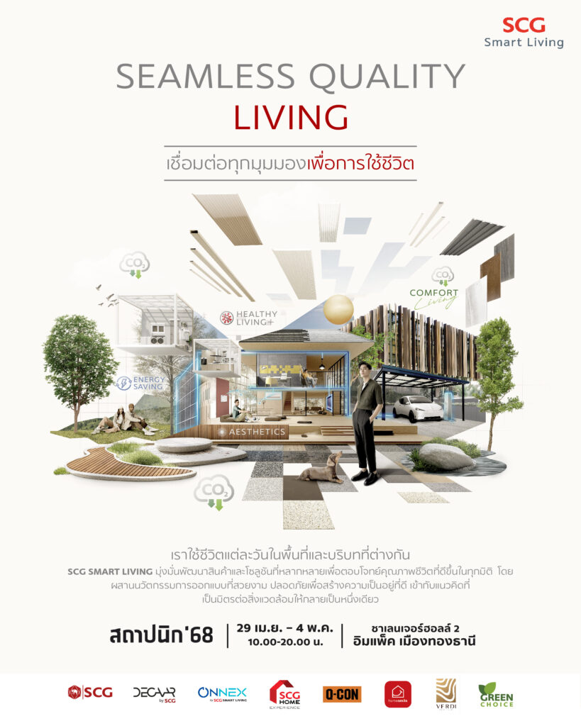เอสซีจี นำเทรนด์นวัตกรรมคาร์บอนต่ำ ร่วมงานสถาปนิก’68 ภายใต้แนวคิด “Seamless Quality Living” ย้ำผู้นำวัสดุก่อสร้างและโซลูชันเพื่อการอยู่อาศัยที่ดีกว่า ปลอดภัย ประหยัดพลังงานรักษ์โลก