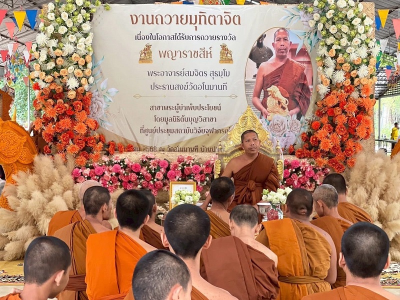 พลังศรัทธาหลอมรวม งานบุญตักบาตรวันวิสาขบูชา พร้อมถวายมุทิตาแด่ “พระอาจารย์สมจิตร สุธัมโม” ผู้ได้รับรางวัลพญาราชสีห์