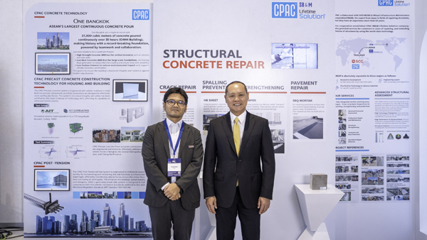 สำหรับภายในงานยังมีการจัดบูธนิทรรศการร่วมนำเสนอนวัตกรรมคอนกรีตกำลังอัดสูง ซีแพค และเทคโนโลยี สำหรับงานซ่อม เสริมกำลัง จาก CPAC SB&M Lifetime Solution ผ่านความร่วมมือกับพันธมิตรญี่ปุ่น Shobond & Mitsui Infrastructure Maintenance Corporation หรือ SB&M ผู้เชี่ยวชาญด้านการซ่อมแซมเชิงลึกที่มีประสบการณ์กว่า 60 ปี ทั้งด้านเทคโนโลยี วัสดุศาสตร์ และการพัฒนานวัตกรรมซ่อมแซมโดยเฉพาะสำหรับสภาพแวดล้อมในภูมิภาคอาเซียนแสดงถึงศักยภาพผู้นำด้านเทคโนโลยีคอนกรีตและความพร้อมในการเป็นผู้ให้บริการโซลูชันด้านการซ่อมแซมและบำรุงรักษาโครงสร้างแบบครบวงจรที่รองรับปัญหาด้านภัยพิบัติ