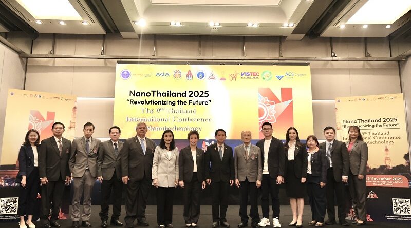 วันที่ 25 กรกฎาคม 2568 ณ โรงแรมรอยัล ออคิด เชอราตัน ริเวอร์ไซด์ กรุงเทพ – สำนักงานพัฒนาวิทยาศาสตร์และเทคโนโลยีแห่งชาติ (สวทช.) โดยศูนย์นาโนเทคโนโลยีแห่งชาติ (นาโนเทค) และสมาคมนาโนเทคโนโลยีแห่งประเทศไทย แถลงข่าว “การจัดประชุมวิชาการนานาชาติด้านนาโนเทคโนโลยี ประจำปี 2568 (NanoThailand2025) ภายใต้แนวคิด “Revolutionizing the Future” นาโนเทคโนโลยีพลิกโฉมโลกอนาคต เปิดเวทีแลกเปลี่ยนความรู้ด้านนาโนเทคโนโลยีทั้งไทยและระดับโลก พร้อมยกขบวนนวัตกรรมเด่นด้านนาโน-เทคโนโลยี อาทิ ไข่โอเมก้าสูง, สารสกัดกระชายดำมูลค่าสูง, ชุดตรวจสำหรับคนไทย, ระบบ/ต้นแบบการจัดการน้ำเพื่ออุตสาหกรรม, ไพลวาเซนโกลด์ และพาร์นิก้าครีม พร้อมโชว์ความสำเร็จของงานวิจัยสู่เชิงพาณิชย์จาก 2 บริษัทเอกชนชั้นนำอย่างสเปเชียลตี้ เนเชอรัล โปรดักส์และเอสบี เฟอร์นิเจอร์ ก่อนจัดเต็มกับ NanoThailand2025 ระหว่างวันที่ 3–5 พ.ย. นี้