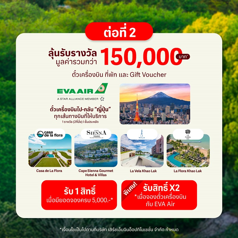 ต่อที่ 2: สิทธิ์จับฉลากรางวัลสำหรับทุกคนที่มียอดจองทุก 5,000 บาท