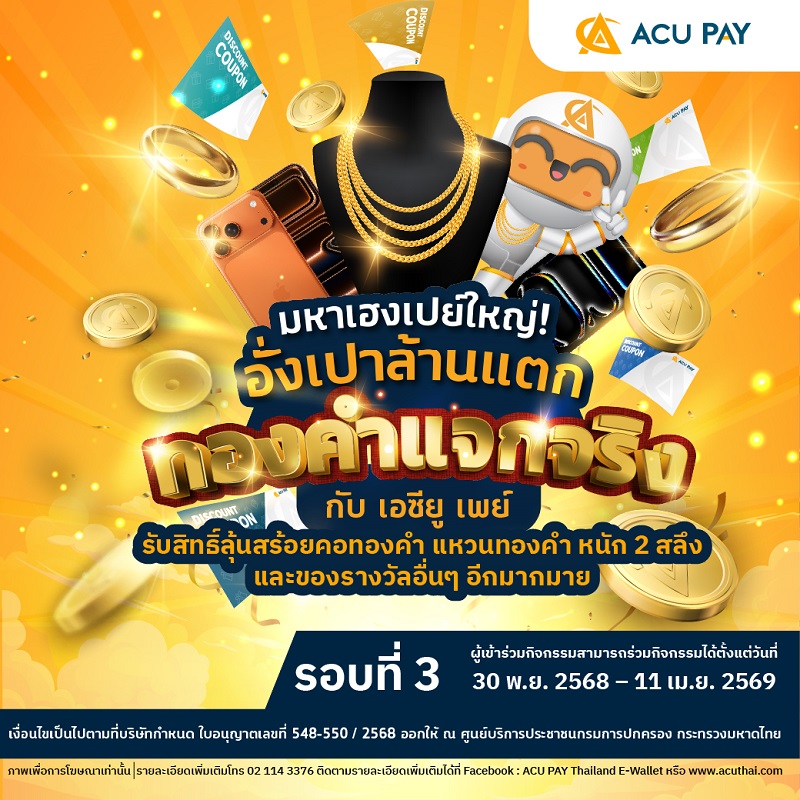 ACU PAY เปิดเกมใหม่ สวนกระแสเศรษฐกิจ เน้นใช้จ่ายอย่างคุ้มค่า ดันแคมเปญ อั่งเปาล้านแตกฯ ครั้งที่ 2 เข้าถึงคนไทยวงกว้างกว่าเดิม