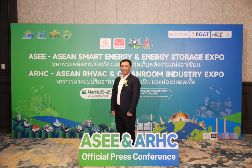 นายสุรนาท พิพัทธกุศลกุล ผู้จัดการอาวุโส ฝ่ายอุตสาหกรรมการแสดงสินค้านานาชาติ สํานักงานส่งเสริมการจัดประชุมและนิทรรศการ (องค์การมหาชน) (TCEB) กล่าวว่า ในฐานะองค์กรหลักของประเทศด้านการส่งเสริมอุตสาหกรรมไมซ์ TCEB ให้ความสำคัญอย่างยิ่งกับงานแสดงสินค้าที่สนับสนุนยุทธศาสตร์ BCG Economy, นโยบาย Net Zero, และการพัฒนา Future Industries ของประเทศ ซึ่งงาน ASEE และ ARHC 2026 ถือเป็นงานที่สอดคล้องกับยุทธศาสตร์เหล่านี้อย่างโดดเด่น และช่วยเสริมบทบาทของประเทศไทยในการเป็นศูนย์กลางด้านเทคโนโลยีสีเขียวและนวัตกรรมพลังงานของภูมิภาคอาเซียน การจัดงานทั้งสองงานไม่เพียงเป็นเวทีแสดงผลงานด้านนวัตกรรมเทคโนโลยีเท่านั้น แต่ยังสะท้อนถึงความมุ่งมั่นของประเทศไทยในการขับเคลื่อนอุตสาหกรรม พลังงานอัจฉริยะ (Smart Energy) ระบบกักเก็บพลังงาน รวมถึงอุตสาหกรรม เครื่องปรับอากาศ ตู้แช่เย็น และเทคโนโลยีควบคุมอากาศภายในอาคาร ให้เติบโตไปสู่ทิศทางที่ยั่งยืนและเป็นมิตรต่อสิ่งแวดล้อมมากยิ่งขึ้น TCEB พร้อมให้การสนับสนุนการจัดงานครั้งนี้อย่างเต็มที่ ทั้งในด้านการส่งเสริมผู้แสดงสินค้าและผู้ซื้อจากต่างประเทศ การพัฒนาความร่วมมือกับพันธมิตร และการยกระดับคุณภาพงานแสดงสินค้าให้เป็นแพลตฟอร์มที่สร้างผลลัพธ์ทางเศรษฐกิจและความร่วมมืออย่างเป็นรูปธรรม