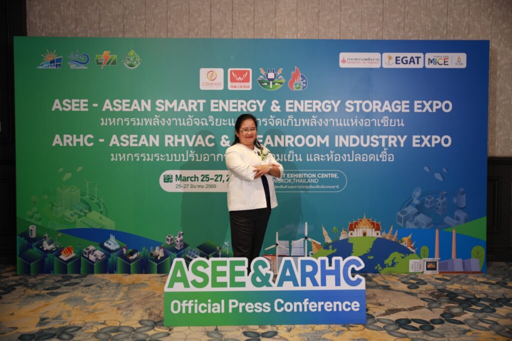 นางสาวเสวิตา ถิ่นสันติสุข ผู้อำนวยการฝ่ายประชาสัมพันธ์ สมาคมพลังงานหมุนเวียนไทย (RE100) กล่าวว่า สมาคมพลังงานหมุนเวียนไทย (อาร์อี 100) มีพันธกิจในการส่งเสริมและสนับสนุนการใช้พลังงานสะอาดในทุกภาคส่วน ทั้งภาคอุตสาหกรรม ธุรกิจ อาคาร และหน่วยงานต่างๆ รวมถึงผลักดันให้ประเทศไทยเดินหน้าตามเป้าหมายด้าน BCG Economy, Net Zero, และการเพิ่มสัดส่วนการใช้พลังงานหมุนเวียนตามมาตรฐานสากล เช่น กรอบ RE100 ที่องค์กรชั้นนำทั่วโลกให้ความสำคัญ การจัดงาน ASEE และ ARHC ในปี 2026 นับเป็นโอกาสที่ยิ่งใหญ่ในการรวบรวมนวัตกรรมล่าสุดจากผู้ผลิตชั้นนำ ทั้งด้านโซลาร์เซลล์ แบตเตอรี่ พลังงานลม ระบบกักเก็บพลังงาน เทคโนโลยีทำความเย็นประสิทธิภาพสูง ตลอดจนโซลูชันอาคารประหยัดพลังงาน ดังนั้น งาน ASEE และ ARHC 2026 จึงเป็นเวทีที่สามารถสร้างความร่วมมือใหม่ ๆ กระตุ้นการลงทุน และเปิดโอกาสให้ผู้ประกอบการไทยได้เข้าถึงเทคโนโลยีระดับโลกที่จะช่วยลดต้นทุน เพิ่มประสิทธิภาพ และสนับสนุนการเปลี่ยนผ่านพลังงานอย่างยั่งยืน นอกจากจะเป็นการสนับสนุน Ecosystem อุตสาหกรรมพลังงานหมุนเวียนแล้ว ยังช่วยสร้างความเชื่อมั่นให้กับนักลงทุนและผู้ผลิตจากทั่วโลกว่าไทยมีความพร้อมในการเป็นศูนย์กลางเทคโนโลยีพลังงานสะอาดของภูมิภาคอาเซียน ทางสมาคมฯ พร้อมให้การสนับสนุนงานทั้งสองที่เกี่ยวเนื่องกับพลังงานอัจฉริยะ เทคโนโลยีกักเก็บพลังงาน ระบบปรับอากาศ ทำความเย็นและห้องปลอดเชื้อ อาคารประหยัดพลังงาน และหวังเป็นอย่างยิ่งว่าจะได้เห็นการแลกเปลี่ยนองค์ความรู้ ความร่วมมือทางธุรกิจ และโครงการที่สามารถนำไปต่อยอดสู่การใช้งานจริง เพื่อสร้างอนาคตที่ยั่งยืนให้กับประเทศไทย