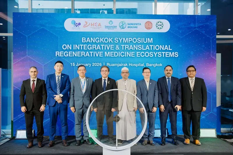 กรุงเทพฯ – วันที่ 15 มกราคม 2569 ประเทศไทยส่งสัญญาณครั้งสำคัญสู่เวทีเวชศาสตร์โลก ด้วยการเปิดตัวแนวคิด “Halal Regenerative Medicine Ecosystem” เป็นครั้งแรก โดย โรงพยาบาลรวมใจรักษ์ (Ruamjairak Hospital) และ Geneovita Biocare International ร่วมกับ ศูนย์ความเป็นเลิศด้านการวิจัยเซลล์ต้นกำเนิดและนวัตกรรมทางการแพทย์ (Center of Excellence in Stem Cell Research and Innovation: ESRI) และวิทยาลัยนานาชาติอิสลามกรุงเทพ ผนึกกำลังพันธมิตรทางการแพทย์และวิชาการจาก มาเลเซีย เวียดนาม ออสเตรเลีย และเครือข่ายความร่วมมือ ซาอุดีอาระเบีย–ไทย จัดงานสัมมนาวิชาการระดับนานาชาติ “Bangkok Symposium on Integrative & Translational Regenerative Medicine Ecosystems”