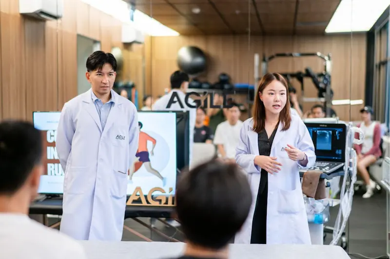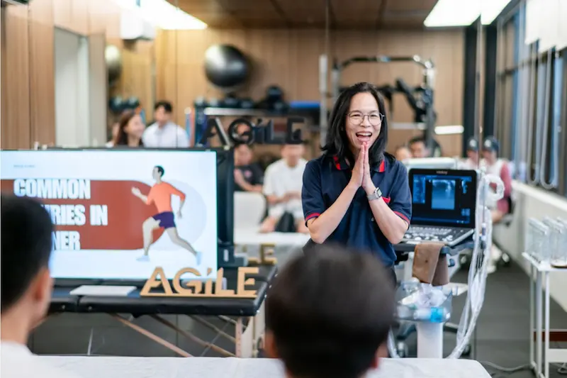 ภายในงานได้รับเกียรติจาก พญ.ธัญชนก ชูธรรมสถิตย์ แพทย์เฉพาะทางสาขาเวชศาสตร์ฟื้นฟู นายแพทย์ สรวิศ สุวรรณลักษณ์ แพทย์เฉพาะทางสาขาเวชศาตร์ฟื้นฟู ประจำ AGILE REHABILITATION CLINIC และทีมนักกายภาพบำบัดผู้เชี่ยวชาญได้ร่วมให้ความรู้เกี่ยวกับการฟื้นฟูร่างกายอย่างถูกต้อง การประเมินความเสี่ยงการบาดเจ็บ และแนวทางการดูแลอาการปวดอย่างเหมาะสม เพื่อให้นักกีฬาสามารถกลับไปฝึกซ้อมและแข่งขันได้อย่างมีประสิทธิภาพและปลอดภัย