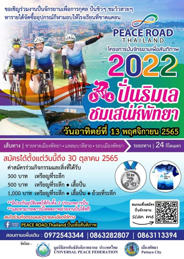 งานปั่นจักรยานเพื่อสันติภาพ Peace Road Thailand 2022 “ปั่นริมเล ชมเสน่ห์พัทยา”